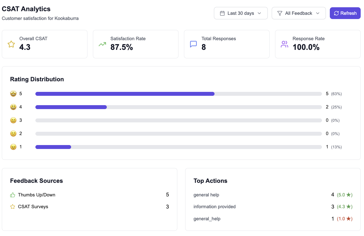 Measure customer satisfaction and continuously improve your AI agent's performance.